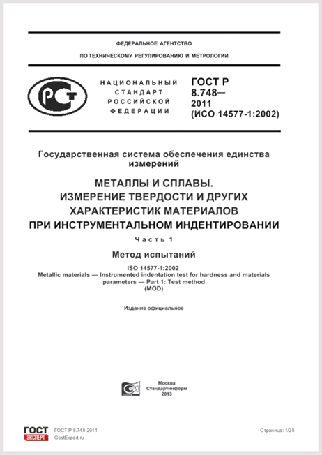 ГОСТ Р 8.748-2011;Измерение твердости и других характеристик материалов при инструментальном индентировании.